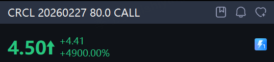 There are 465.04K Circle option contracts traded on Wednesday, up 635% from the previous trading day. Call options account for 63% of overall option trades. Particularly high volume was seen for the $80 strike call option expiring February 27, with 20,962 contracts trading. CRCL 20260227 80.0 CALL