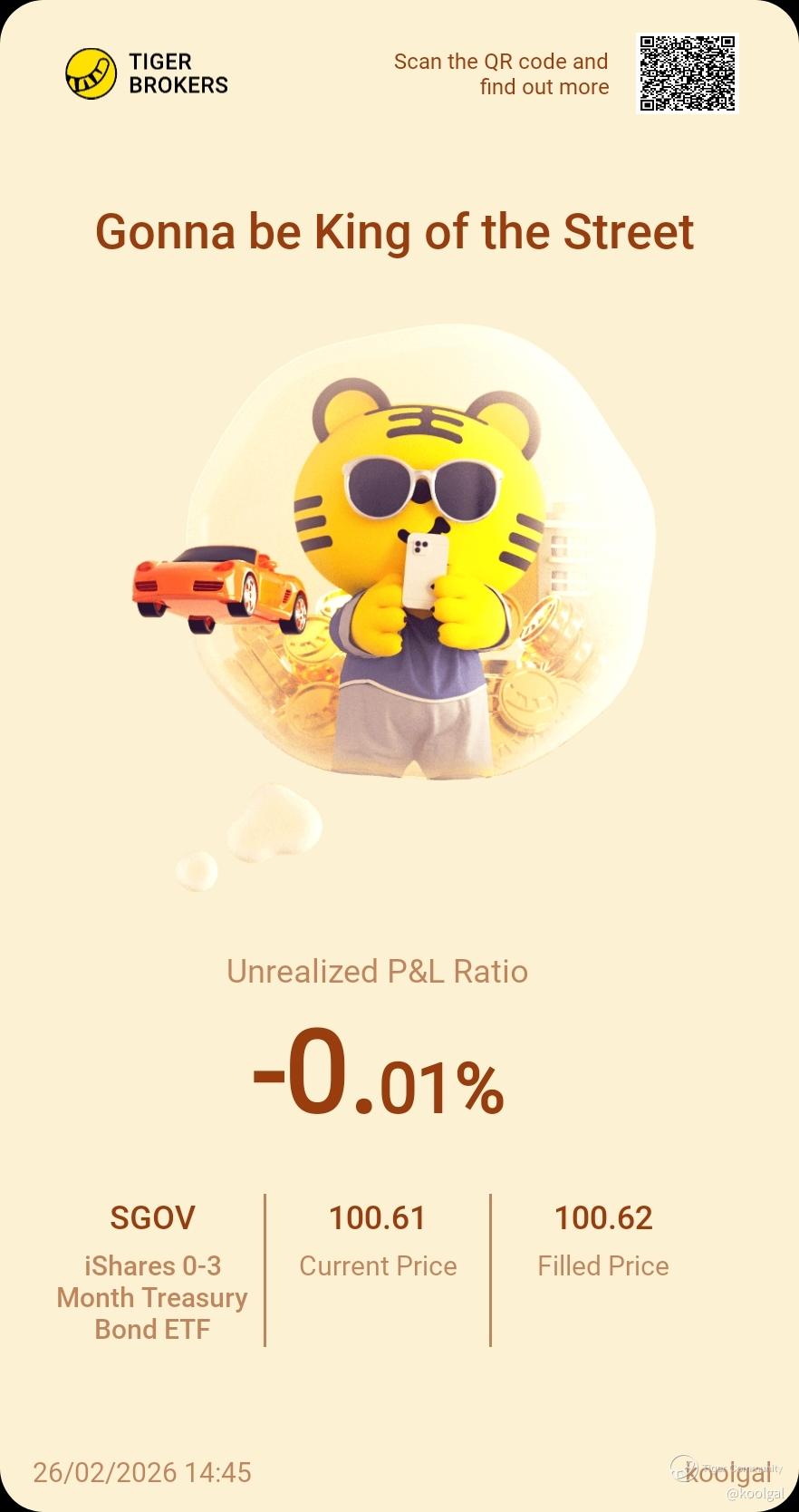 🌟🌟🌟I buy SGOV because it behaves like a "cash plus" instrument. It tracks the ICE 0 to 3 months Treasury Securities Index, investing only in Treasury Bills that mature within 90 days. SGOV also has a low expense ratio of 0.09% & has high liquidity, making it easy to buy and sell. SGOV pays dividends every month. The current dividend yield is 4%. It goes ex dividend on March 2 2026. Ka-ching!😍😍😍🌈🌈🌈💰💰💰