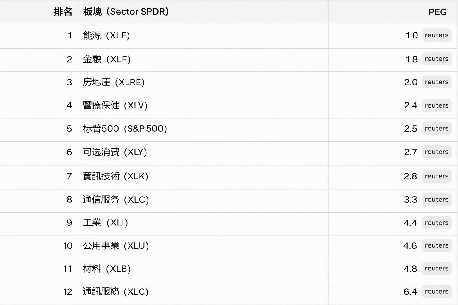 那麼我們需要再多考慮一個維度就是他們這些板塊的平均的增長率如何,如果用PEG這個指標來排出來目前的各板塊的估值的話,可以看到,我們以2025年9月的數據來排出來各板塊的PEG的排名~[Victory]