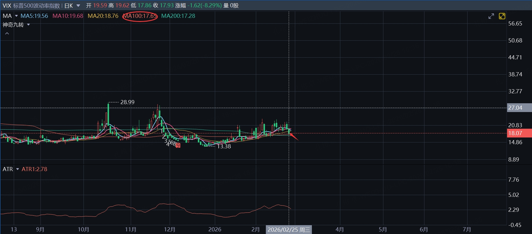 對於VIX的看多頭寸而言,如果VIX指數跌破了100日均線,則暫時止損離場,等待升破100日均後再考慮看多![Grin]