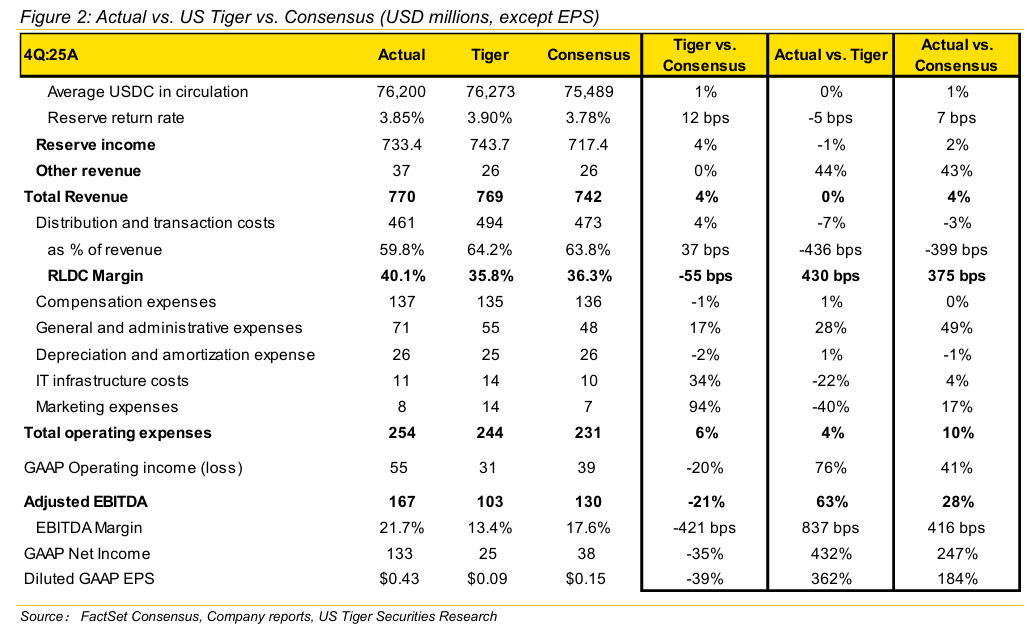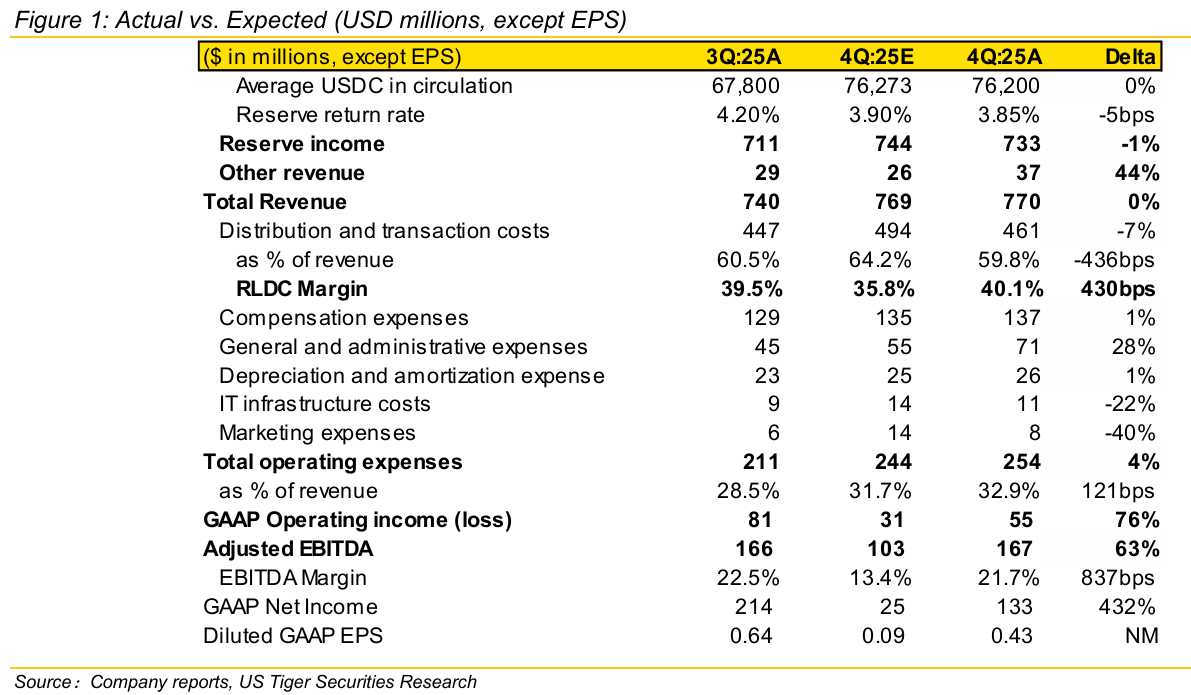 CRCL delivered a clear margin-driven beat in 4Q25, supported by strong RLDC performance and disciplined cost management.
