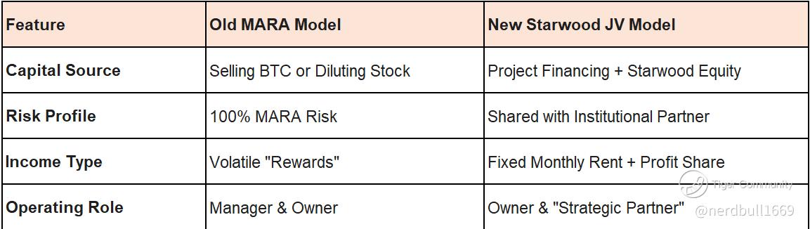 Capital Contributions: Development costs (construction, cooling, power upgrades) are shared based on the ownership percentage. Since Starwood has a $125B+ balance sheet, they provide the "institutional capital" (debt and equity), which allows MARA to build sites without diluting its own shareholders as heavily.