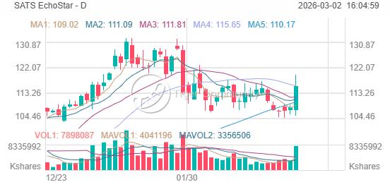As of March 1, 2026, SATS closed at $115.53, up +6.61% (+$7.16). The stock is currently -12.7% below its 52-week high of $132.25.