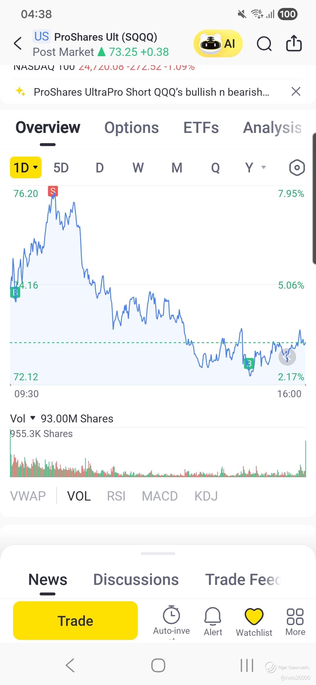$ProShares UltraPro Short QQQ(SQQQ)$