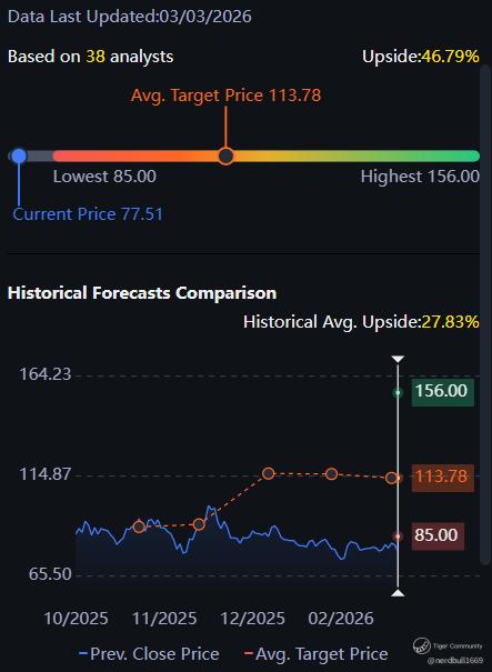 Current Sentiment: Despite strong AI tailwinds, the stock has seen some recent pressure, trading near $78–$81. Analysts maintain an average price target of $113, suggesting significant perceived upside if the company can prove it isn't being squeezed by competitors like Broadcom or Astera Labs.