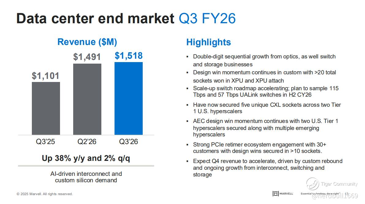 Marvell delivered a "beat and raise" quarter, driven almost exclusively by explosive growth in its Data Center segment.