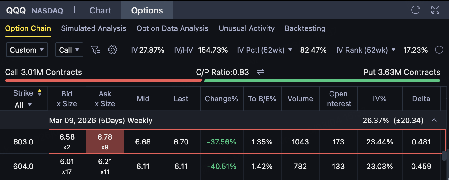 WhenQQQ expiration price ≥ $603Time: