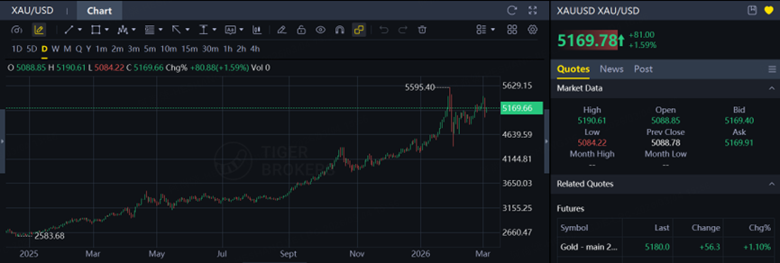 After falling more than 4.38% in the previous session and briefly dropping below the $5,000 mark intraday, gold has rebounded today to around $5,169, recovering part of the losses from the prior trading day.