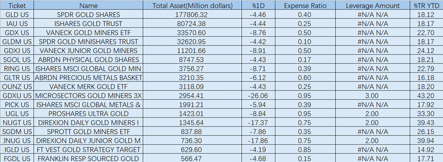 Leveraged products tend to be more volatile. The triple-leveraged gold miners ETF $MicroSectors Gold Miners 3x Leveraged ETN(GDXU)$ manages about $2.9 billion in assets and charges a 0.95% management fee. The double-leveraged $二倍做多黄金矿业指数ETF-Direxion(NUGT)$ has roughly $1.3 billion in assets with a 0.75% expense ratio. $金矿指数二倍做多ETF(JNUG)$ , another double-leveraged ETF focused on junior gold miners, manages about $700 million in assets and also charges 0.75%.