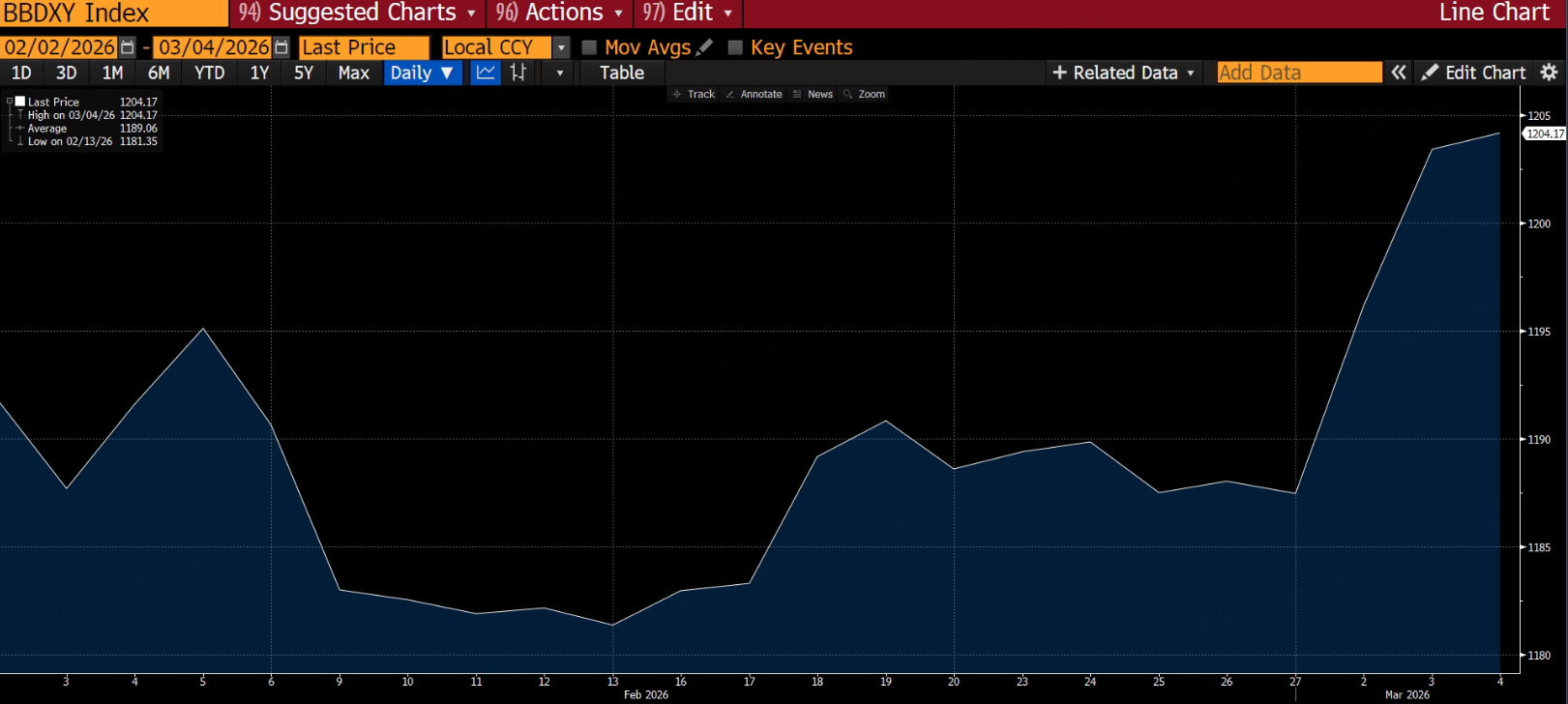 At the same time, the US dollar has strengthened noticeably. A key gauge of the dollar has risen about 1.4% this week as capital flows back into dollar-denominated assets amid geopolitical tensions. A stronger dollar increases the cost of purchasing gold for investors using other currencies, which also weighs on gold prices.