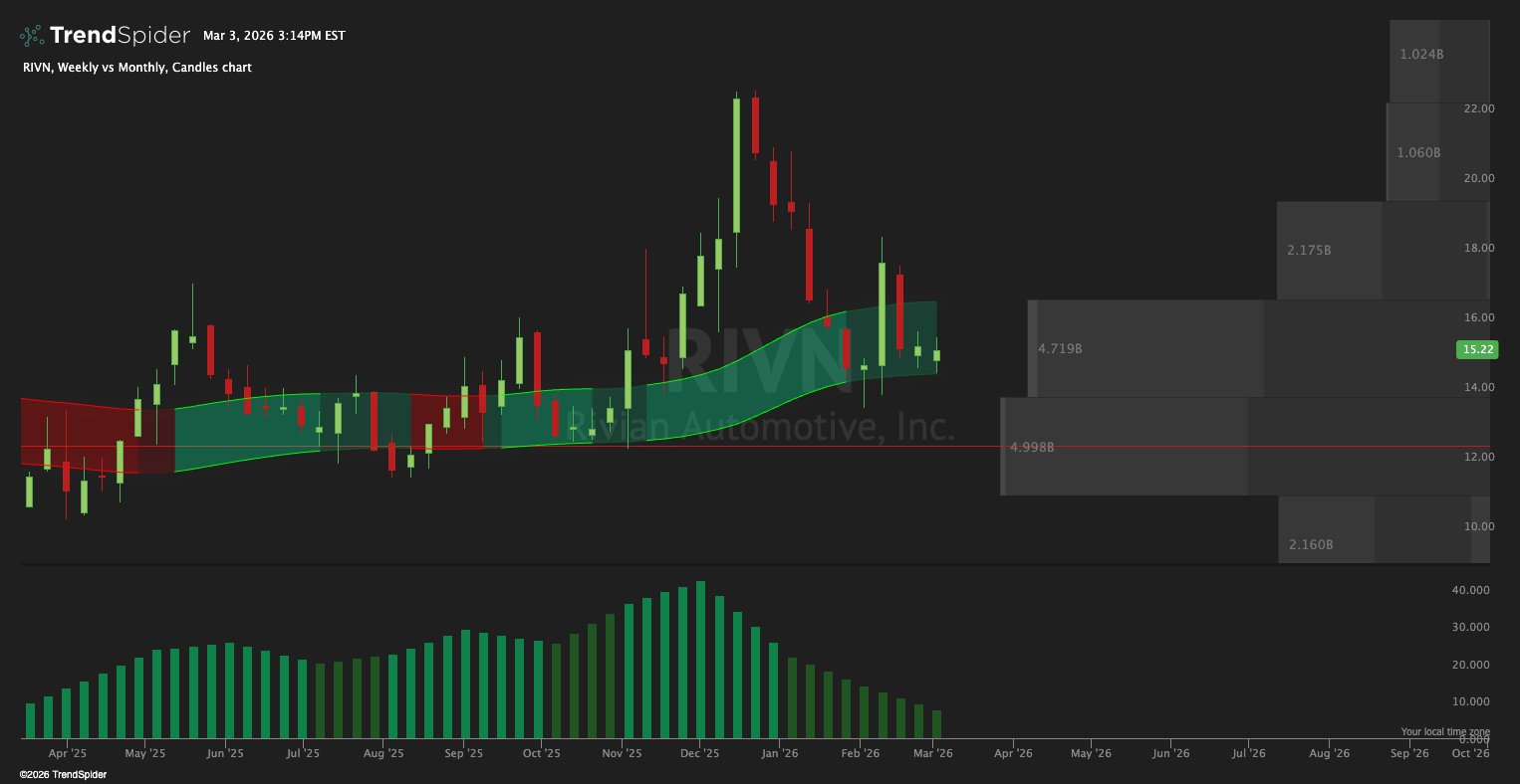 $HOOD and $NOW remain in bearish cycles despite bounce potential, $MSFT is reacting off major long-term support, and $RIVN continues compressing inside a developing buy range.