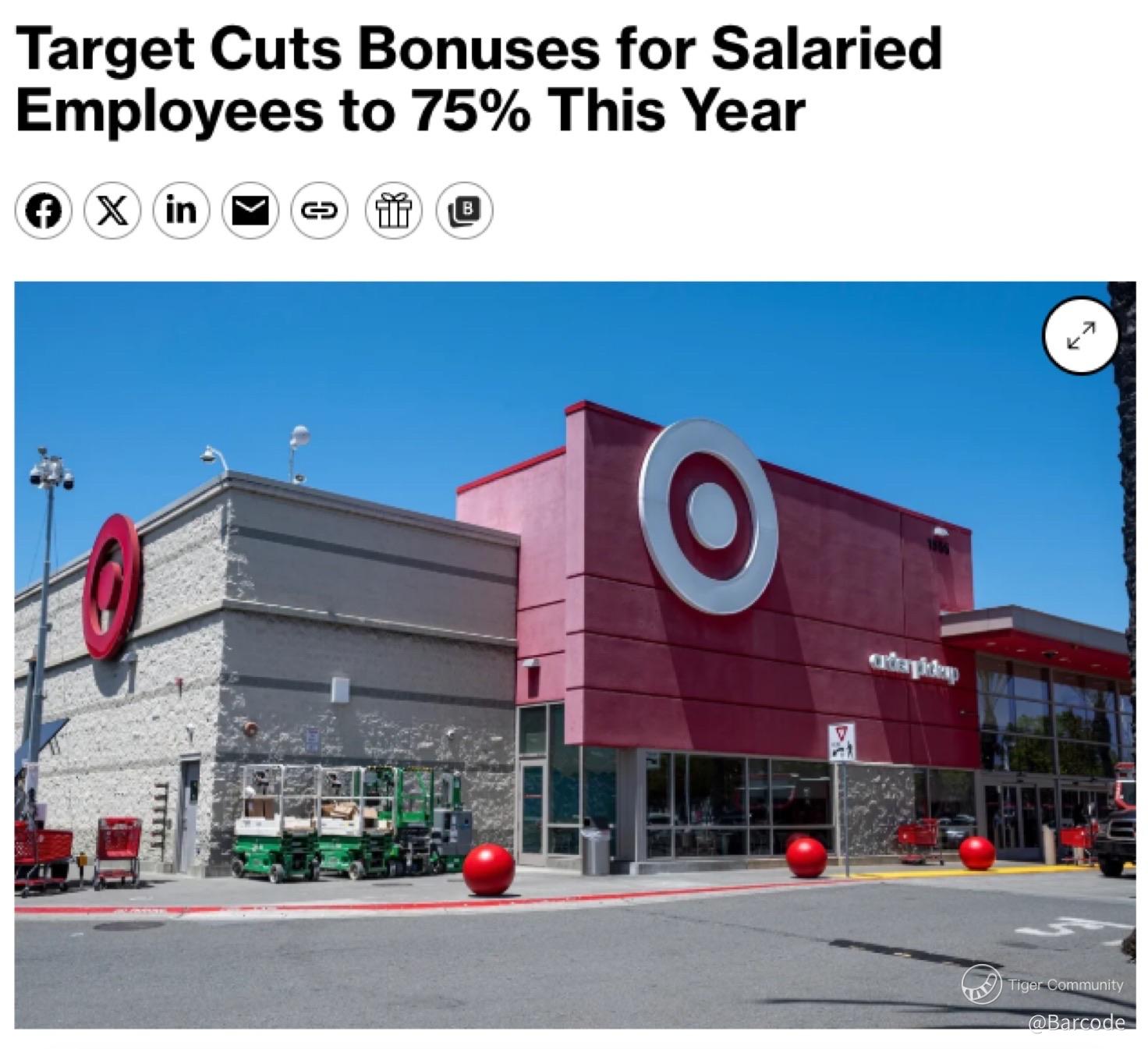 $TGT is reducing salaried employee bonuses to 75% of target for the second consecutive year while battling weaker sales and ongoing profit pressure.