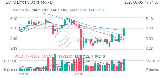 As of March 4, 2026, EMPD closed at $4.44, up +12.98% from the previous close of $3.93. The stock remains significantly down from its 52-week high of $44.09.