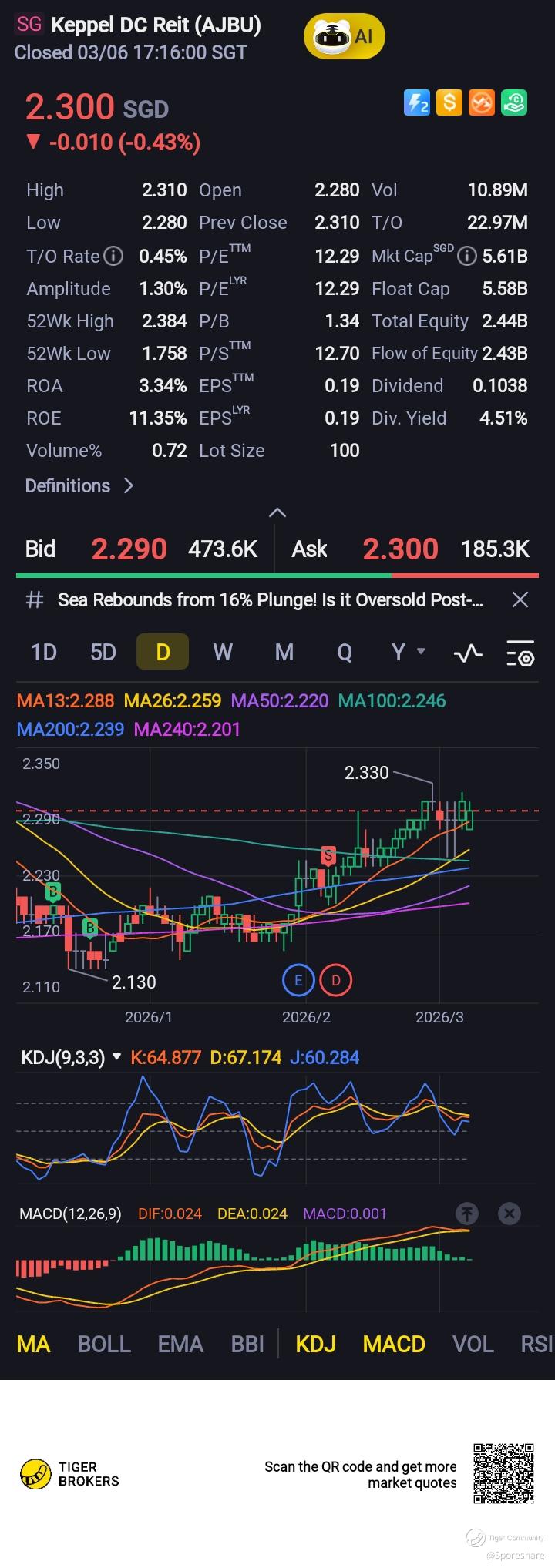 Keppel DC Reit - She is gaining strength likely to rise up to test 2.35 and above !She is trading above the recent PO price of 2.24, congrats for those who subscribed and holding the share now with profit, nice!
