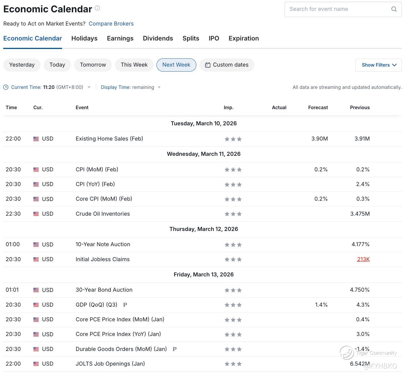 The Consumer Price Index (CPI) data, along with the Core CPI, will be published in the coming week. The forecast for month-on-month CPI growth is 0.2% for February. If the actual CPI growth deviates from this forecast, increased volatility can be expected in the financial markets.