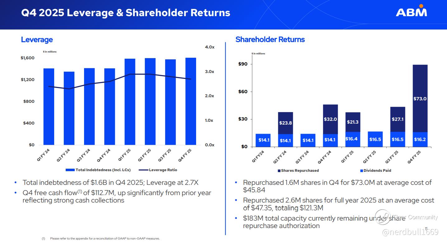 1. The "Ex-Insurance" Reality Check ABM explicitly issued its FY2026 adjusted EPS guidance of $3.85 to $4.15 with the caveat that it excludes future prior-year insurance adjustments.