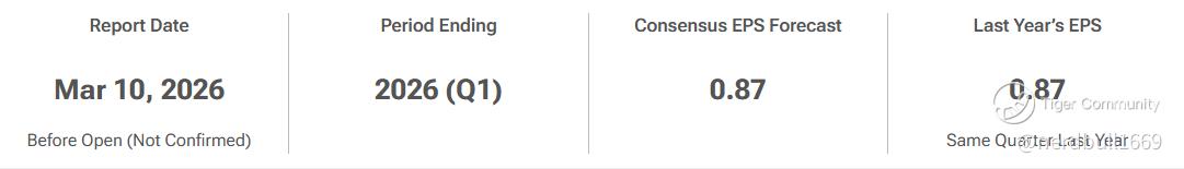 • Consensus EPS: $0.87 (Flat compared to $0.87 in Q1 2025).