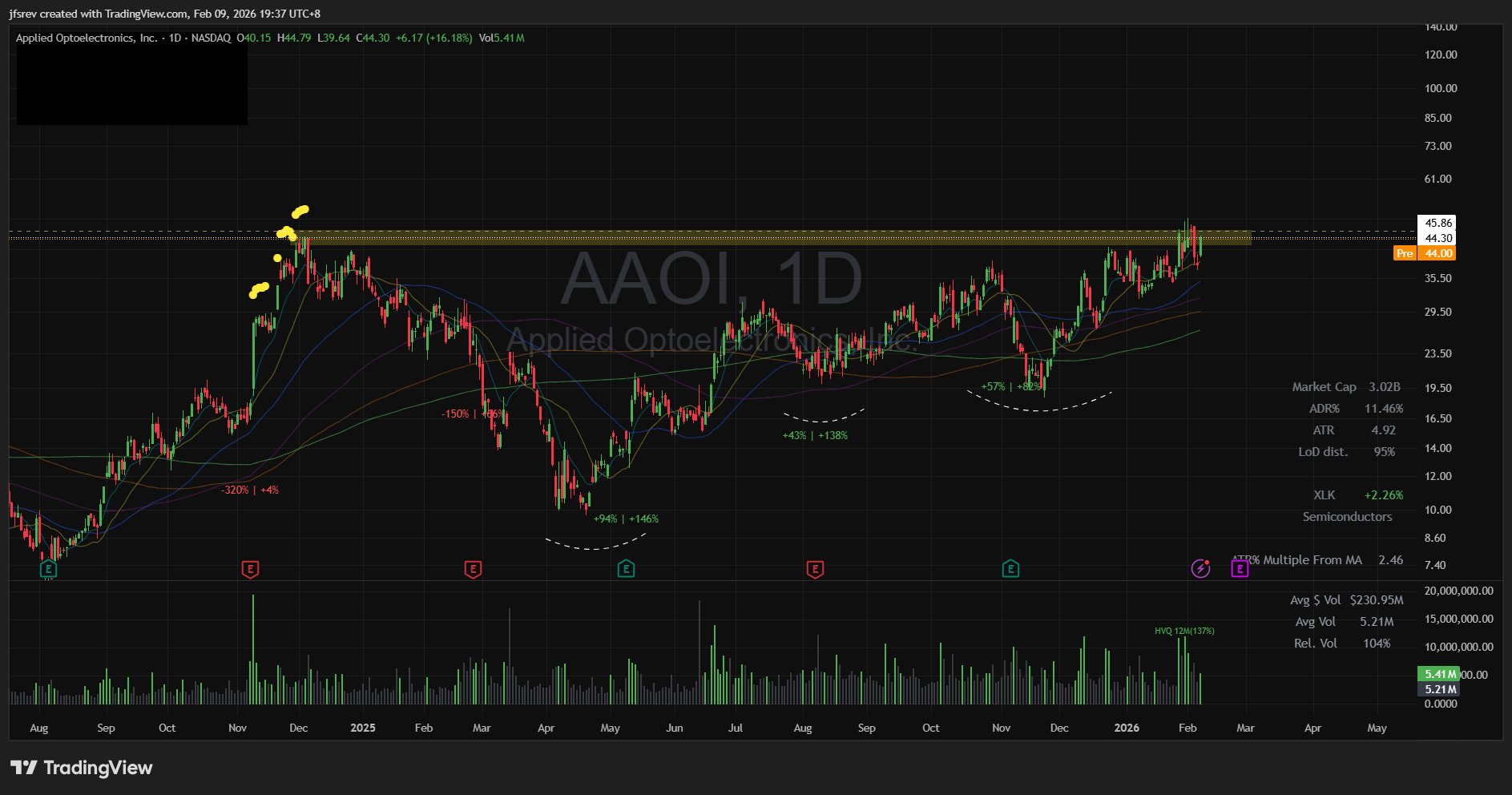 $Applied Optoelectronics(AAOI)$ (11.5% ADR) – Less than 1 x ADR from its 52-week high