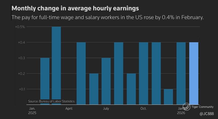 Despite the job losses, US’s Average Hourly Earnings rose by +0.4% for the month of February 2026, and +3.8% YoY. (see below)