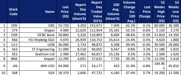 $DBS(D05.SI)$ $Singtel(Z74.SI)$ $OCBC Bank(O39.SI)$ $YZJ Shipbldg SGD(BS6.SI)$ $UOB(U11.SI)$ $ST Engineering(S63.SI)$ $Seatrium Ltd(5E2.SI)$ $Keppel(BN4.SI)$ $JMH USD(J36.SI)$ $SGX(S68.SI)$