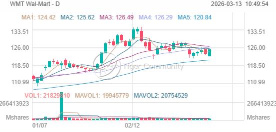 Walmart Inc.(WMT) Climbs +1.49%: Retail Titan Nears 52-Week High, Testing $127 Resistance