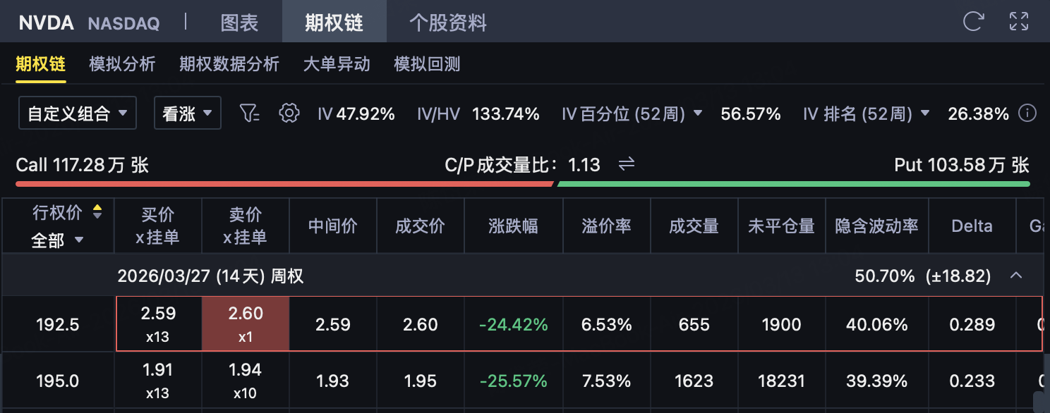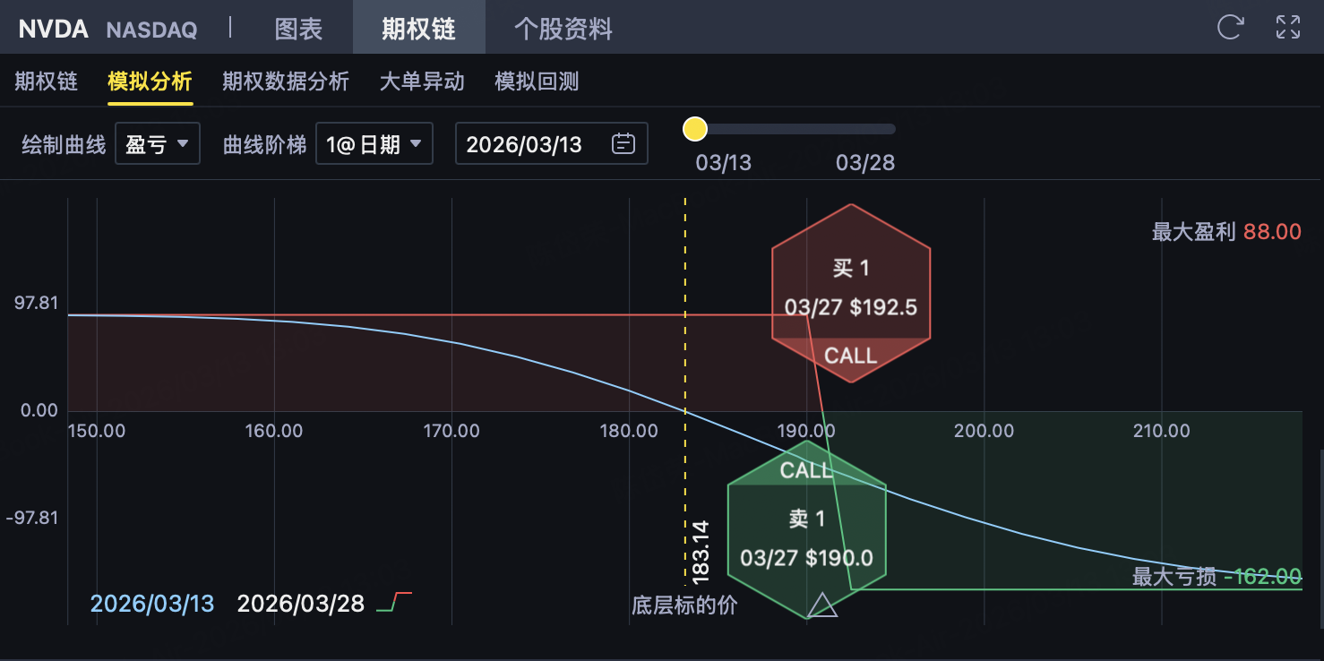 In this context, if it is judged that it is difficult to effectively break through the pressure range above $190-$192.5 before NVDA expires, you can consider building a bear market bullish spread strategy of 190/192.5, and strive for profits by collecting premium while controlling upside risks.