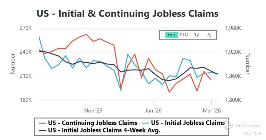 • Thu, 12 Mar 2026 - Jobless claims - weekly & continuing.