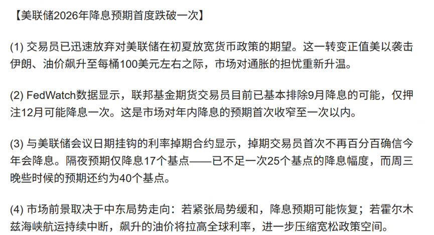What has changed even more is the dollar. After spending much of the past year in a weak trend, the greenback has started to behave very differently since the Strait disruption. With higher oil feeding inflation concerns, rate-cut expectations for this year have been pushed back sharply, and the market is now pricing in very little easing from the Fed, which is helping support dollar demand. If the next Fed chair also turns out to be more focused on balance-sheet tightening, then concerns over dollar liquidity could become an even bigger macro theme.