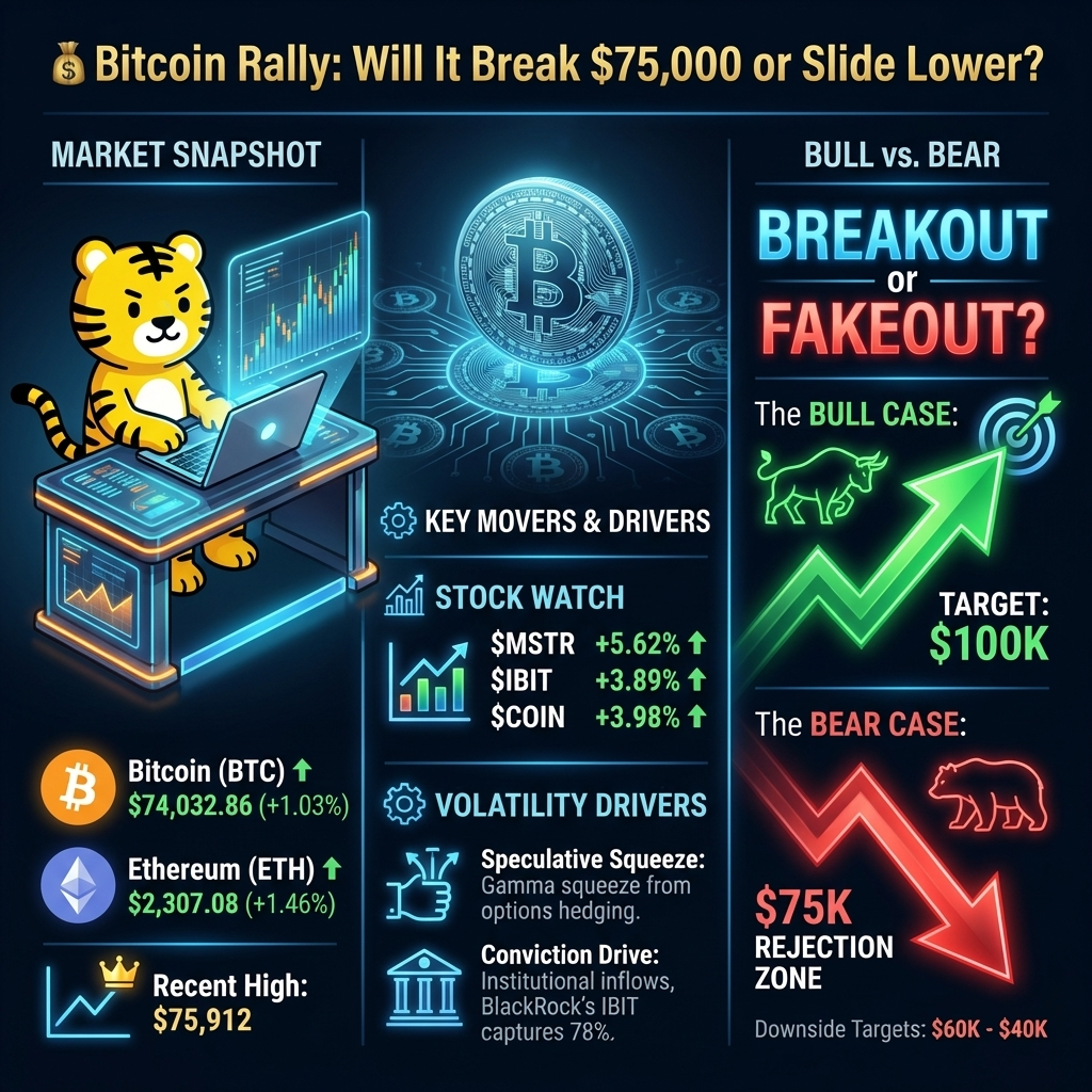 💰Bitcoin Rally: Will It Break $75,000 or Slide Lower?