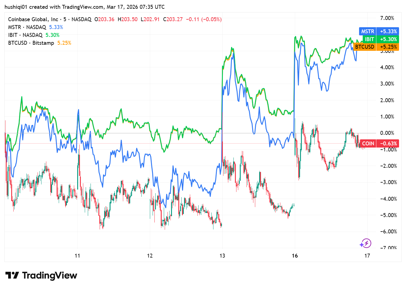 Equities tied to the crypto ecosystem are currently moving in close correlation with the broader digital asset market.