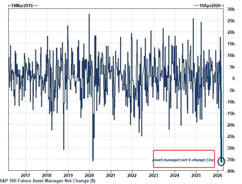 Institutional trading desk data reveals that the selling pressure on US equities is not to be underestimated. Goldman Sachs' Prime Book data flashes a distinctively negative signal: US equities have faced sell-offs for the fourth consecutive week. More alarmingly, hedge funds are not only selling but actively increasing their exposure to short products, while asset managers have offloaded a record volume of S&P futures.