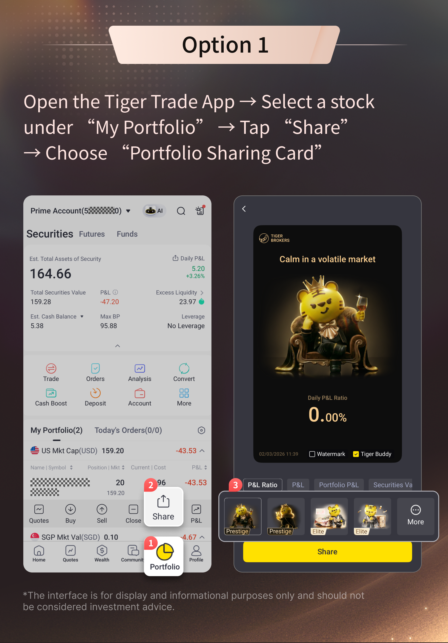 📌Method 2: Open the Tiger Trade App → Go to My Portfolio → Tap Today’s P&L → Select Portfolio Sharing Card