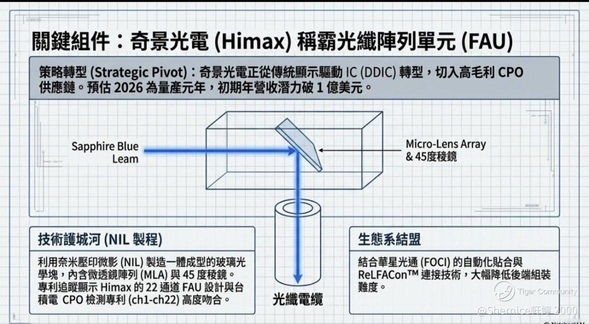 Design Win Specs: Himax provides the nano-scale micro-lens arrays that allow light to travel from fiber optic cables directly into AI chips.