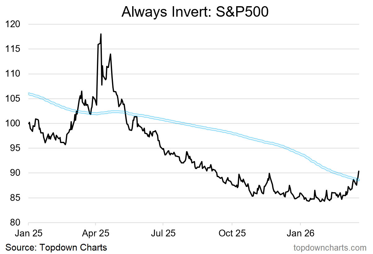 On that note, as a bias check for bulls, flipping the S&P500 upside down …it kind of looks bullish (which is not a good thing).