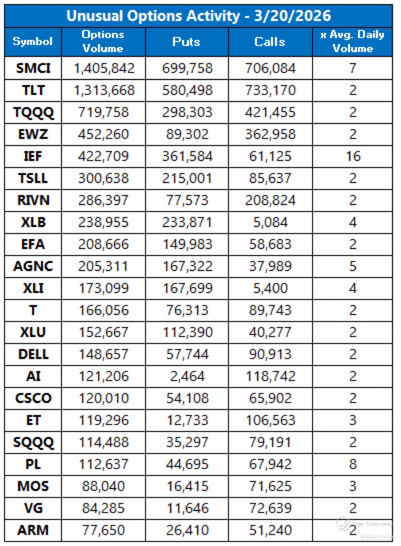 $SUPER MICRO COMPUTER INC(SMCI)$ $ProShares UltraPro QQQ(TQQQ)$ $Rivian Automotive, Inc.(RIVN)$ π₯πβ οΈ 20Mar26 Options Flow Is Pricing a Market Shock, Not a Directional Move β οΈππ₯