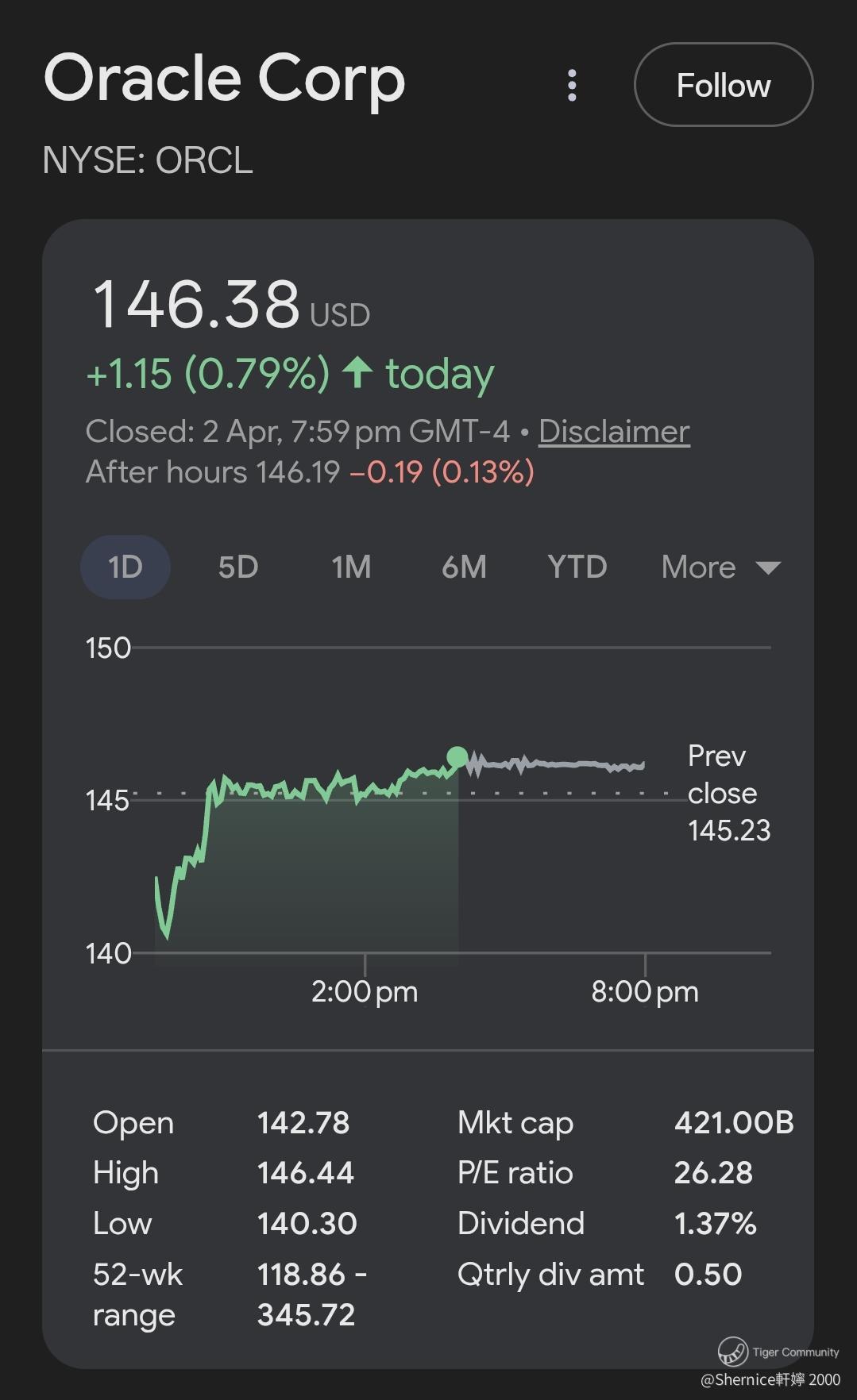 Oracle is trading at $146 today.
