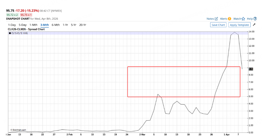 A very typical backwardation structure. This structure tells us that the profit from a near-term front-to-far spread narrowing is not very large, because the front-month premium is not excessive. Meanwhile, far-month contracts still embed a significant risk of escalation – as I just said, the possibility of a renewed US-Iran-Israel conflict in two weeks remains high, so the war premium already priced into farmonth contracts is unlikely to be quickly unwound. Therefore, we can only take a short-term bet on the front-to-far spread retracing after the initial de-escalation. Most of that profit has already been realized overnight: