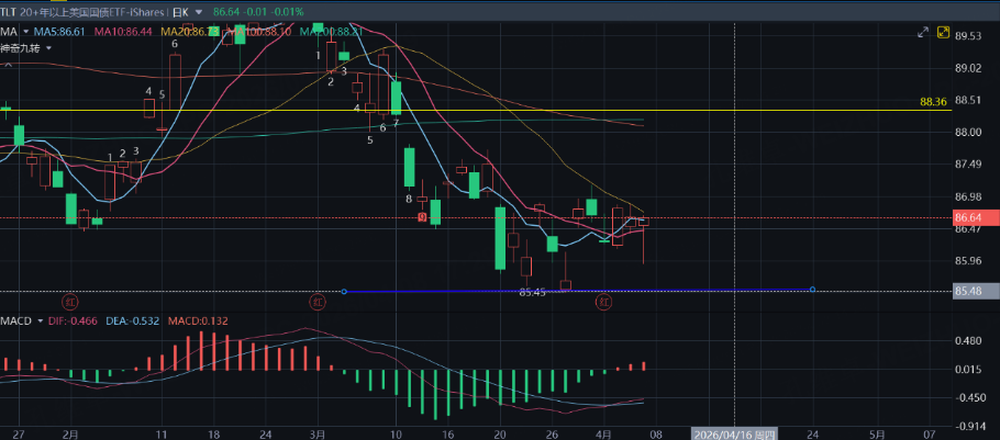 $美国10年期国债收益率(US10Y.BOND)$ $3倍做空7-10年期国债ETF-Direxion(TYO)$ $20+年以上美国国债ETF-iShares(TLT)$