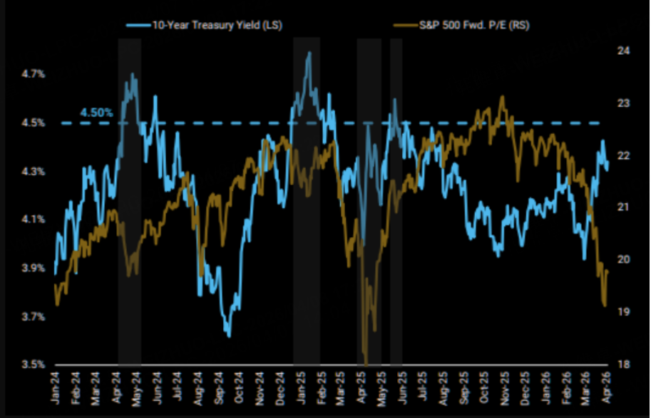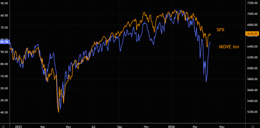 In fact, the 10-year Treasury yield pulled back after touching 4.5%, causing the MOVE index (Treasury volatility) to drop, which in turn helped the S&P 500 move higher: