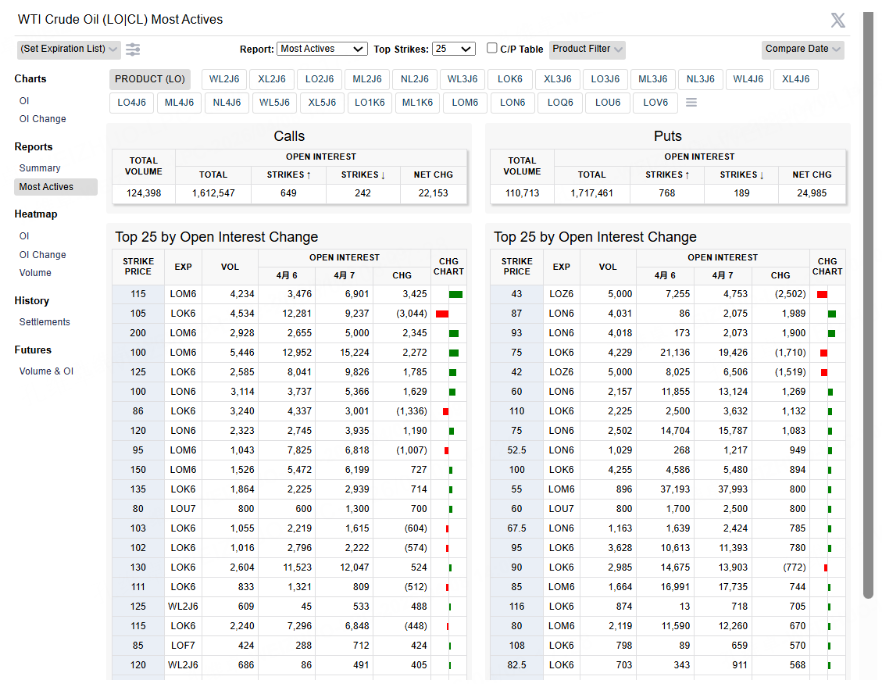But here is the question: selling the call – we know we can sell around the previous high of 120. What about the put? What strike is appropriate? Very simple: use the latest price distribution chart for crude oil futures option: