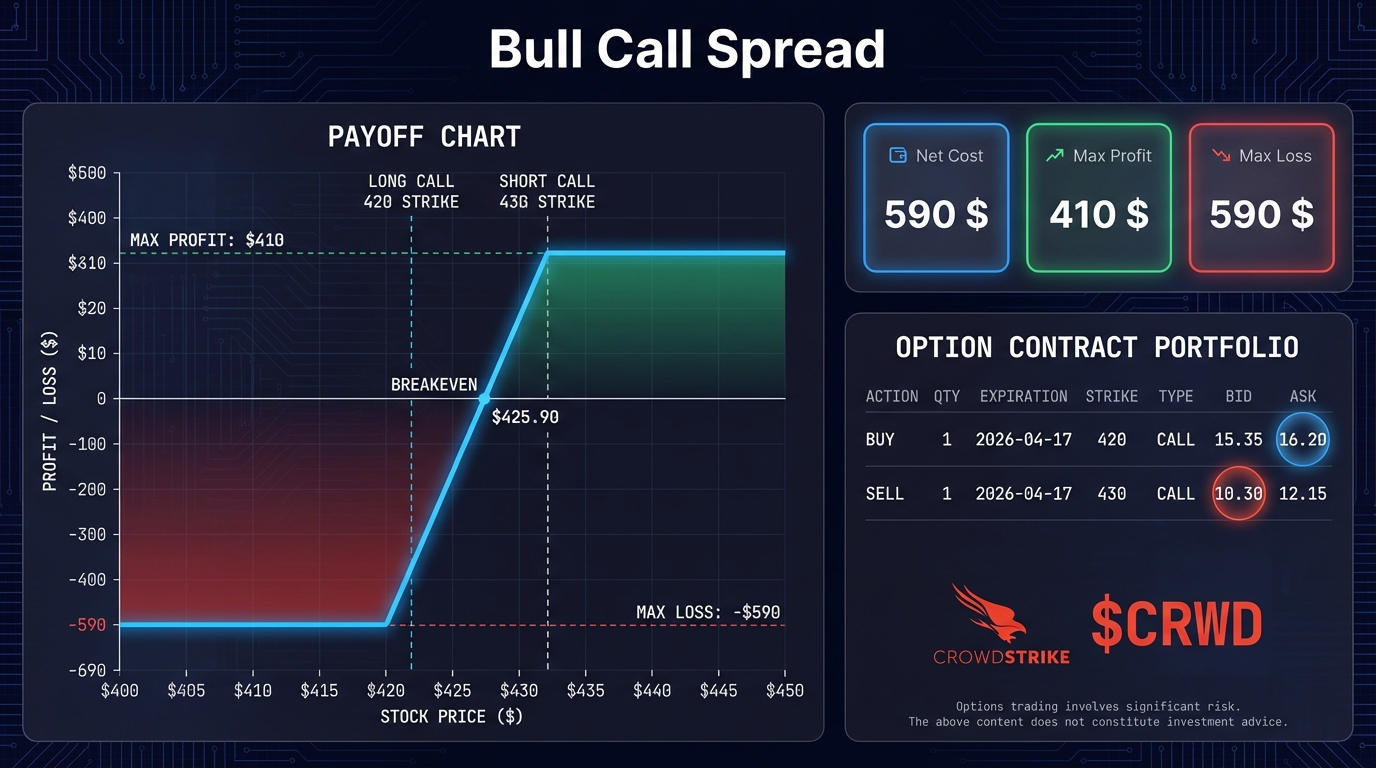 $CRWD Bull Call Spread: $590 Cost, Max Profit $410 by Apr 17, 2026