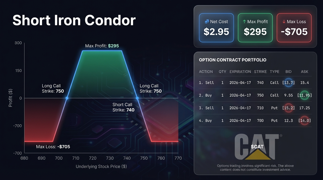 $Caterpillar(CAT)$ Options Short Iron Condor: Credit $295, Max Profit $295 on Apr 8, 2026