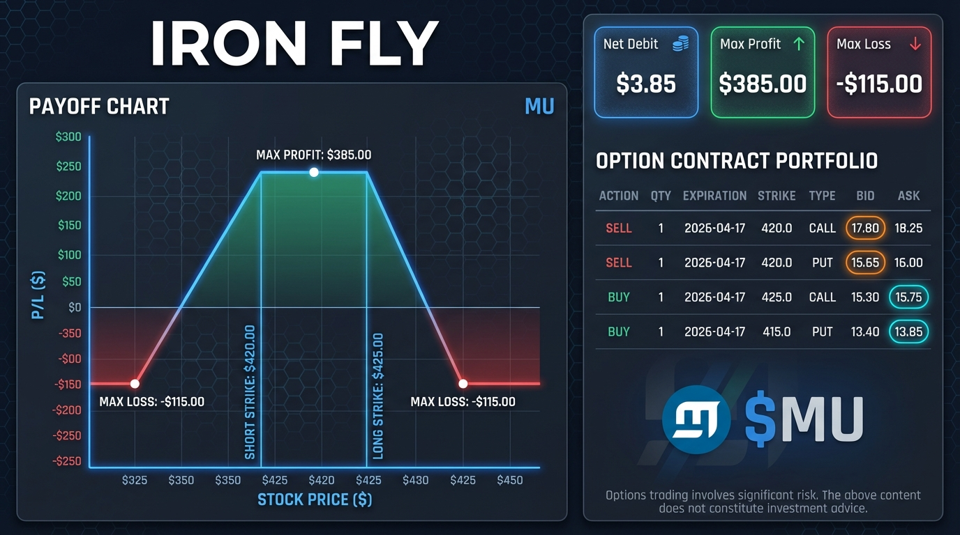 $MU Options Iron Fly: Credit $3.85, Max Profit $385 on 2026-04-17 π