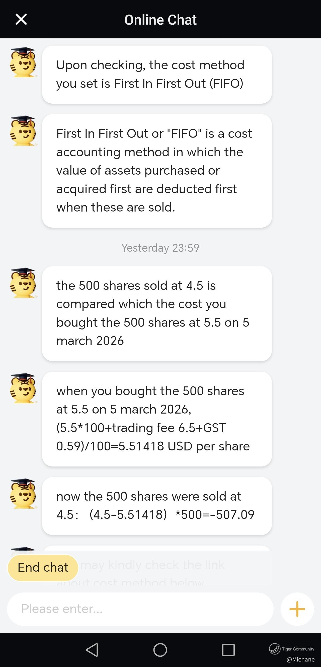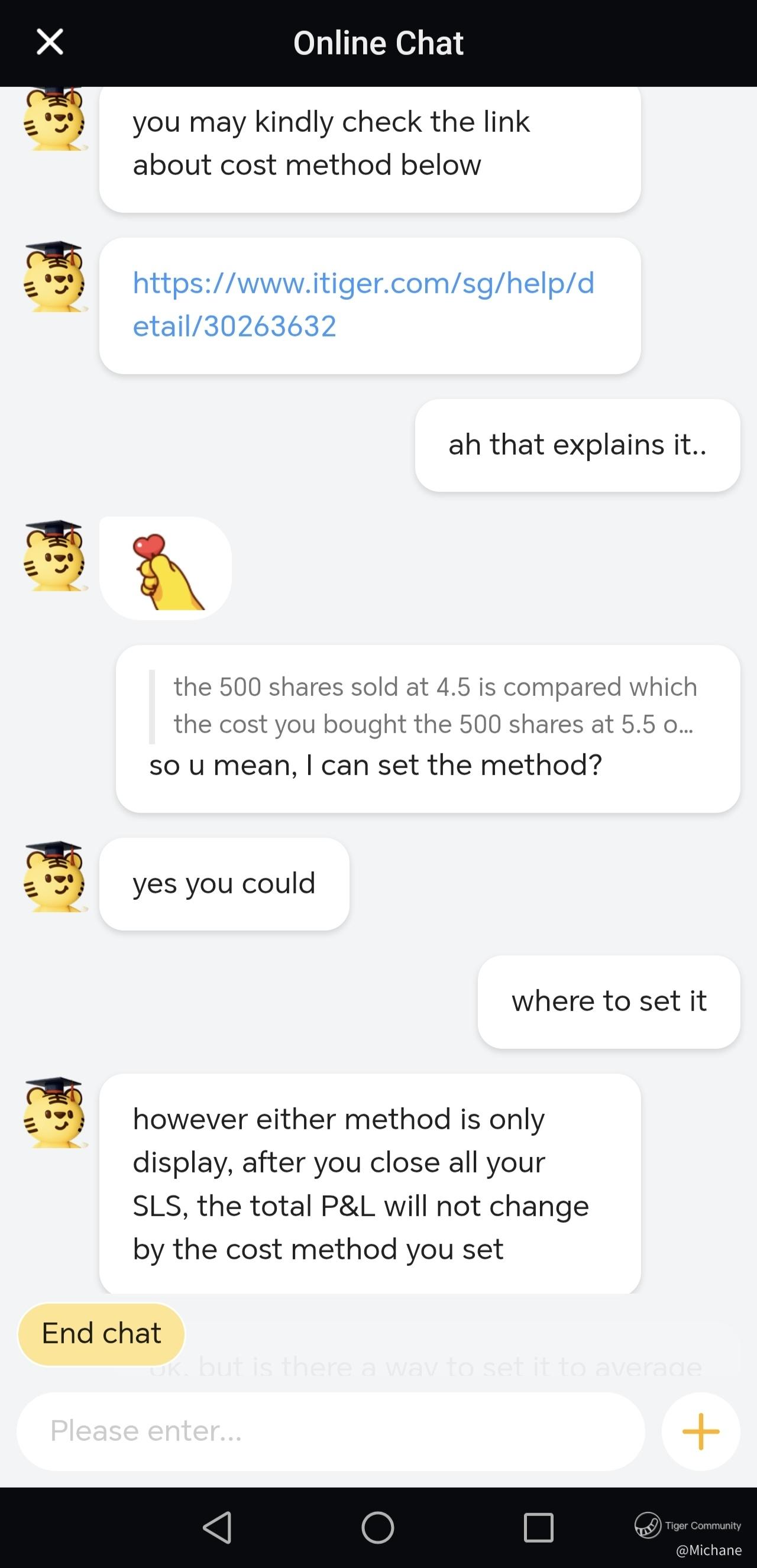 - ZhongRenChun·04:34I would prefer lot method. where i buy first lot of 10 shares. then I buy second lot of 20 shares. then I sell first lot of 10 shares, it should calculate based on first lot of 10 shares. not take average of all shares.LikeReport