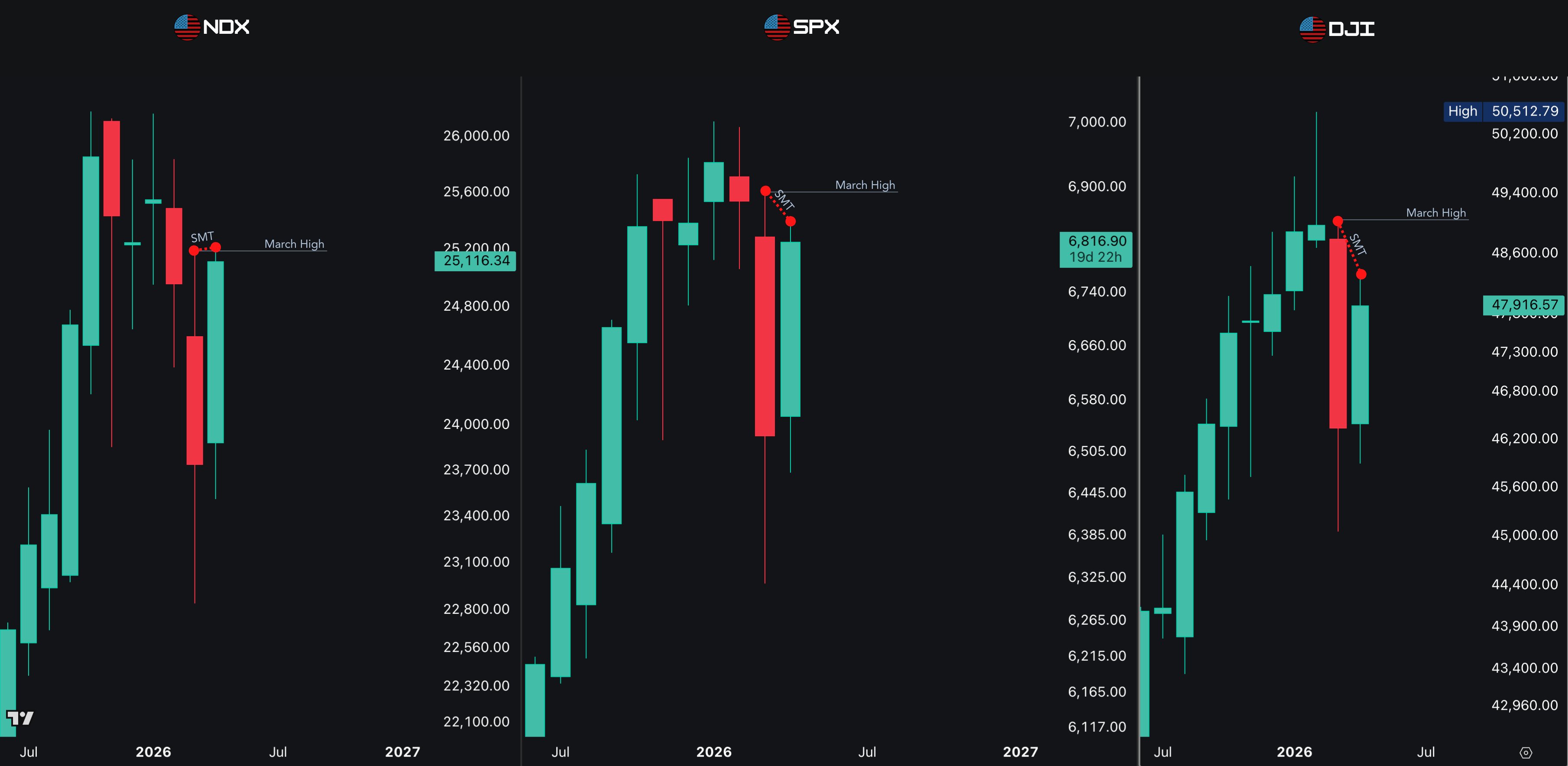 Bearish Monthly SMT Divergence with $NASDAQ 100(NDX)$ .