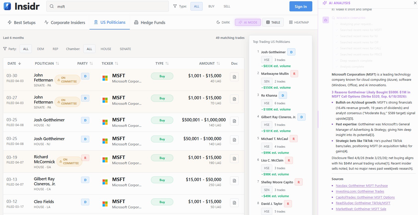 Josh Gottheimer buying LARGE AMOUNT of $Microsoft(MSFT)$ shares before earnings on April 29.