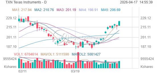 TXN +3.15% at $223: Chip Rally Extends but Stretch Signals Rise