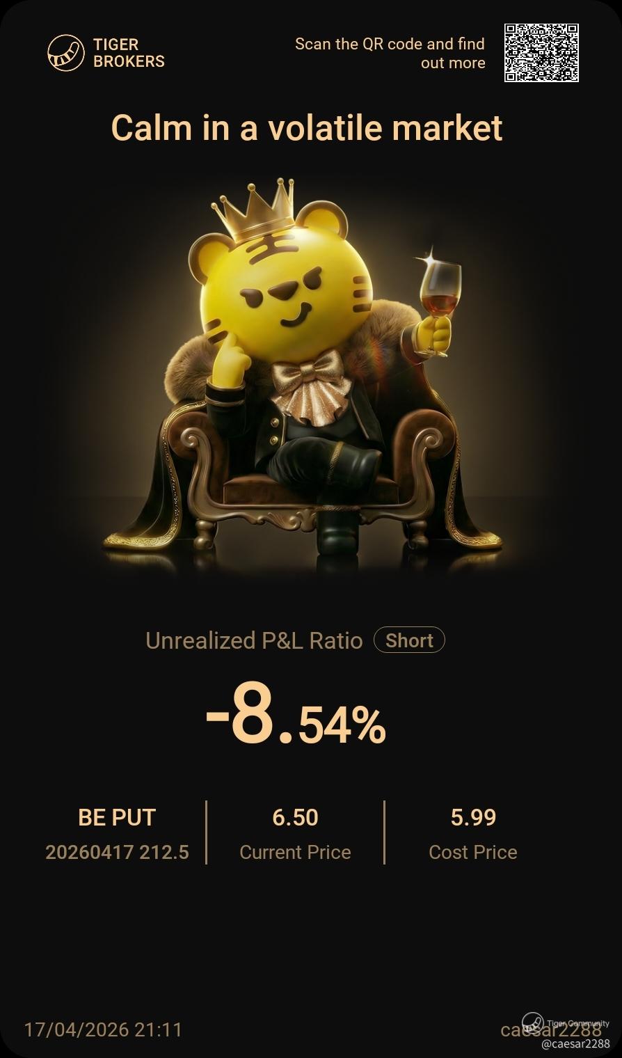 $BE 20260417 212.5 PUT$ will I survive this n pocket usd 70k hhhhmmm