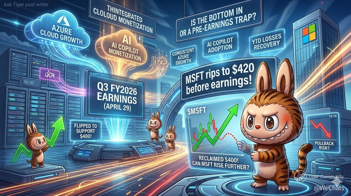 $Microsoft(MSFT)$ MSFT Rips to $420 Ahead of Q3 Earnings — Is the Bottom In or Is This a Pre-Earnings Trap?