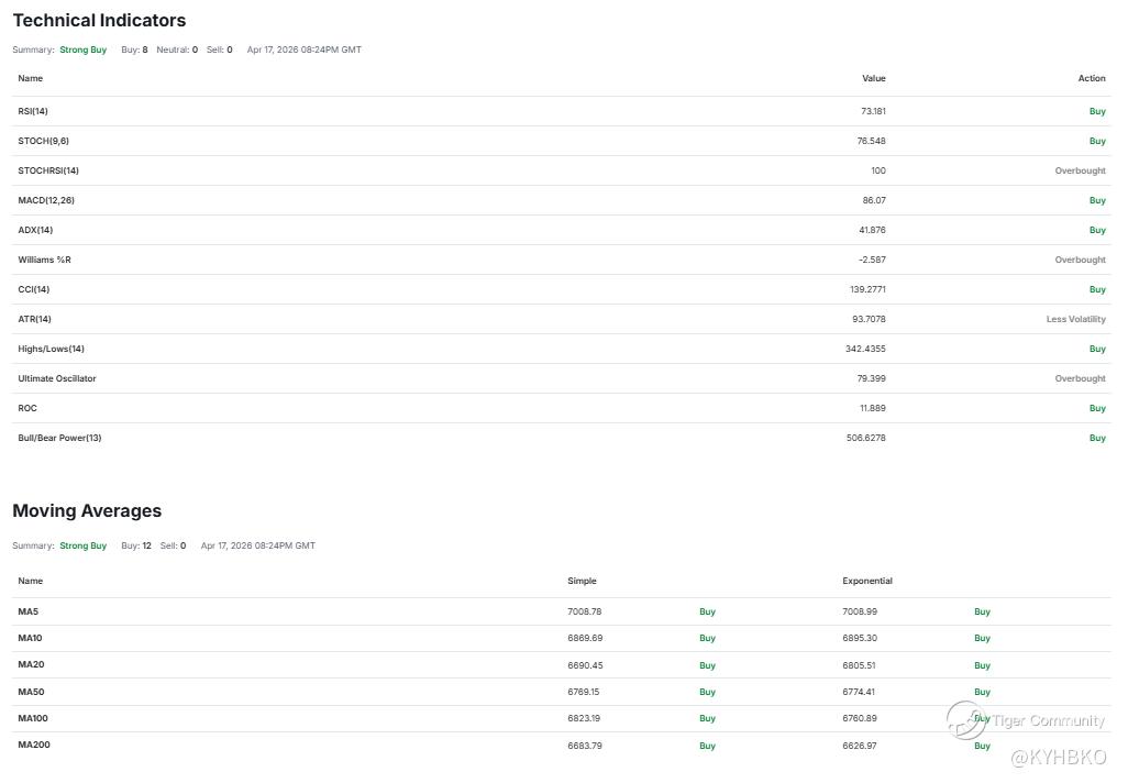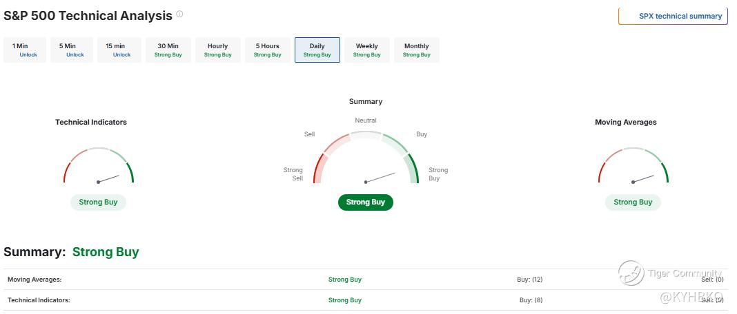 Technical analysis indicates a “strong buy,” with all 20 indicators aligned in favour of a bullish outlook. Notably, no indicators are suggesting a bearish trend. This consensus among technical signals highlights significant upward momentum and a positive market sentiment for the S&P 500 at this time.